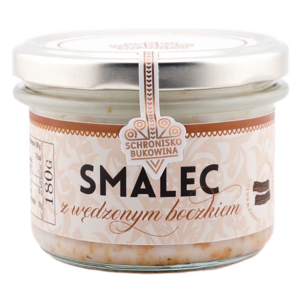 Smalec z boczkiem to smaczna propozycja od Schroniska Bukowina, cenionego producenta, który specjalizuje się w tworzeniu wyrobów spożywczych z naturalnych składników. Produkt wyróżnia się starannie dobranym smakiem, stworzonym z wysokiej jakości tłuszczu wieprzowego, opalanego dymem bukowym boczku oraz cebuli i przypraw. Dzięki temu smalec nie zawiera żadnych sztucznych konserwantów ani aromatów, co czyni go zdrowym i autentycznym dodatkiem do codziennych potraw.